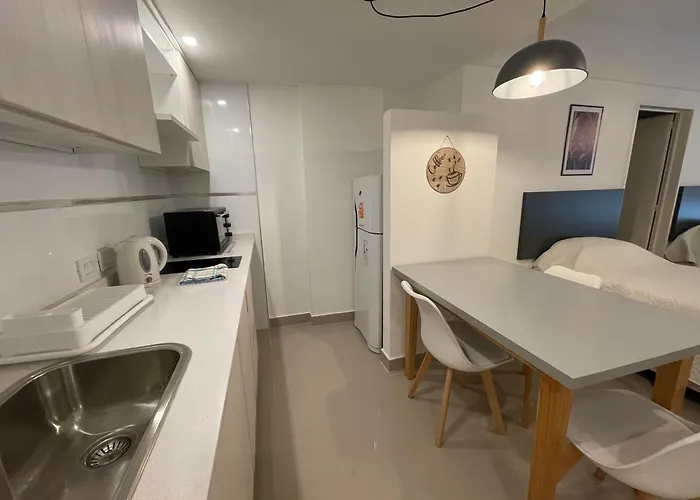 Ervaar ultiem comfort in de keuken van Modern Studio In San Telmo - Paseo De La Cisterna -411, voorzien van een koffie/theezetapparaat, een koelkast en een oven. Plaza de Mayo metrostation is gemakkelijk bereikbaar, het is op circa 300 meter afstand.